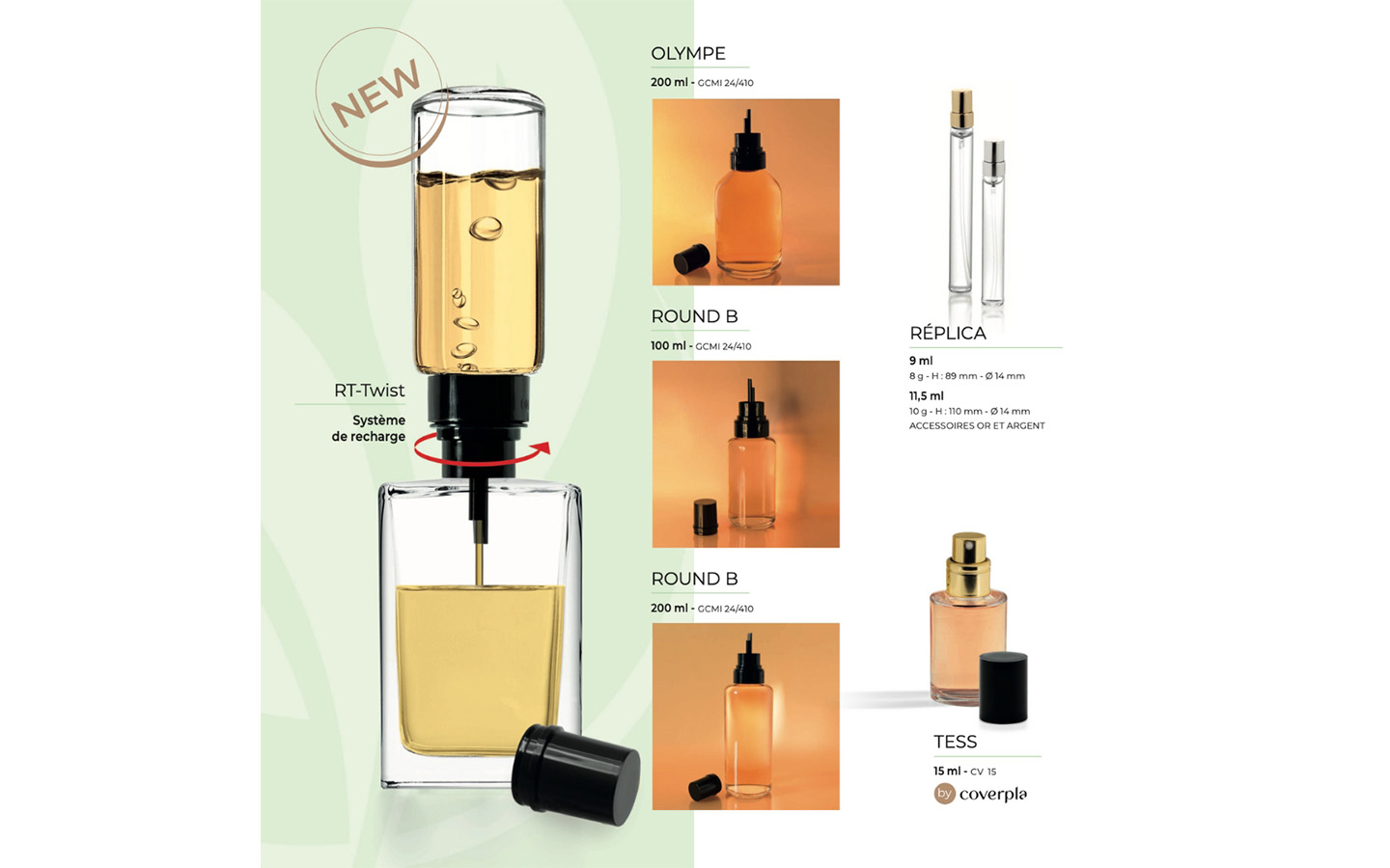 Il s’adapte très simplement sur les flacons dotés de bagues à vis (CV15 ou SNI 15). Et pour les recharges, Coverpla propose les flacons Round Bottle (100 et 200 ml) et Olympe (200 ml) pour leurs formats et leur compatibilité.